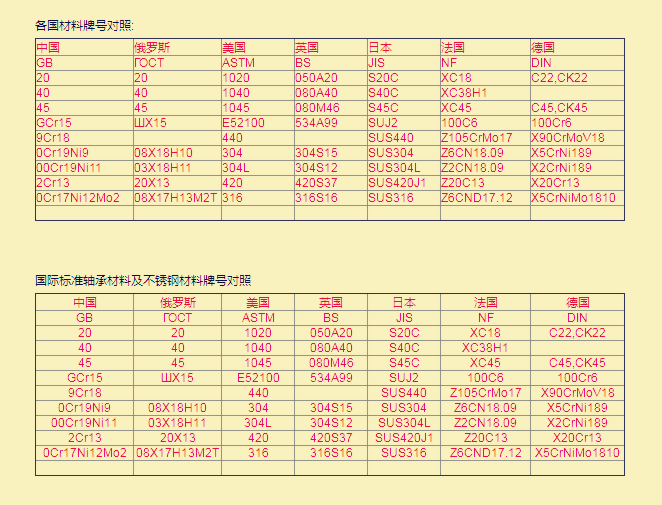 每個國家對于不銹鋼軸承的材料牌號是不一樣的,大家在選購的是應該要注意區分: